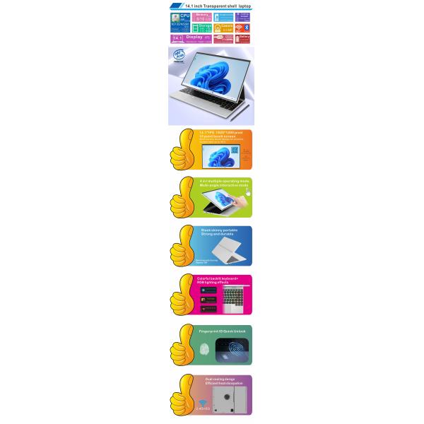 | Features | Touch screen computer, flat panel function; 180 ° opening and closing; D shell to increase the activity of the bracket; four ultra-narrow bezel, screen ratio of up to 92%; large round hat backlit keyboard, fingerprint recognition. | ||||